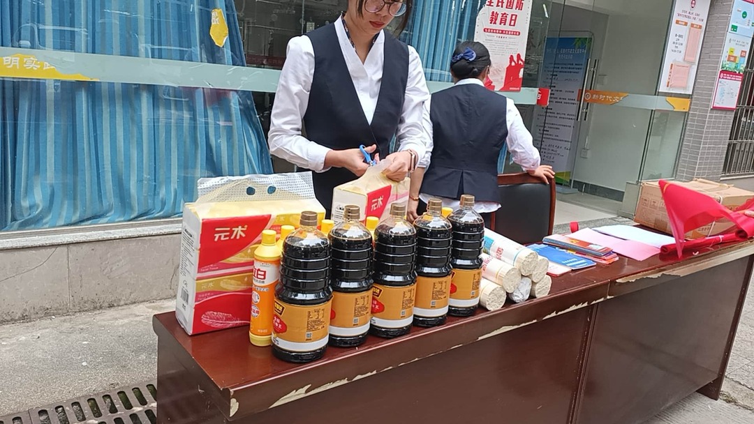 活动伊始,实践站桌面上各类琳琅满目的小礼品——盐、纸巾、洗洁精、酱油、面条等早已依次摆开,瞬间吸引了村民们的参与热情。实践站的志愿者们详细介绍了游戏规则:每人五个圈,站在指定线外,套中即可将礼物收入囊中。